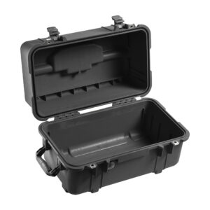 INTERIOR (L X W X D) EXTERIOR (L X W X D) LID DEPTH: 4.91″ (12.5 cm) BOTTOM DEPTH: 6.01″ (15.3 cm) TOTAL DEPTH: 10.92″ (27.7 cm) INT VOLUME: 1.16 ft³ (0.033 m³) WEIGHT WITH FOAM: 12.48 lbs (5.7 kg) WEIGHT EMPTY: 8.75 lbs (4 kg) BUOYANCY: 82.00 lbs (37.2 kg) BODY: Polypropylene LATCH: EXL O-RING: Polymer PINS: Stainless Steel FOAM: Polyurethane PURGE BODY: ABS PURGE VENT: 3 Micron Hydrophobic Non-Woven MINIMUM TEMPERATURE: -40° F (-40 ° C) MAXIMUM TEMPERATURE: 210° F (99 ° C) CERTIFICATIONS: IP67 |