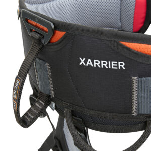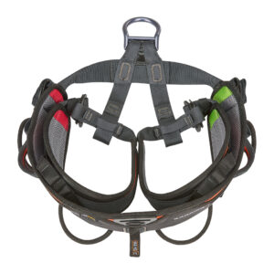 Two eyelets for mounting a positioning seat, four large material holders, two tool eyelets and two loops for carabiners round off the harness.